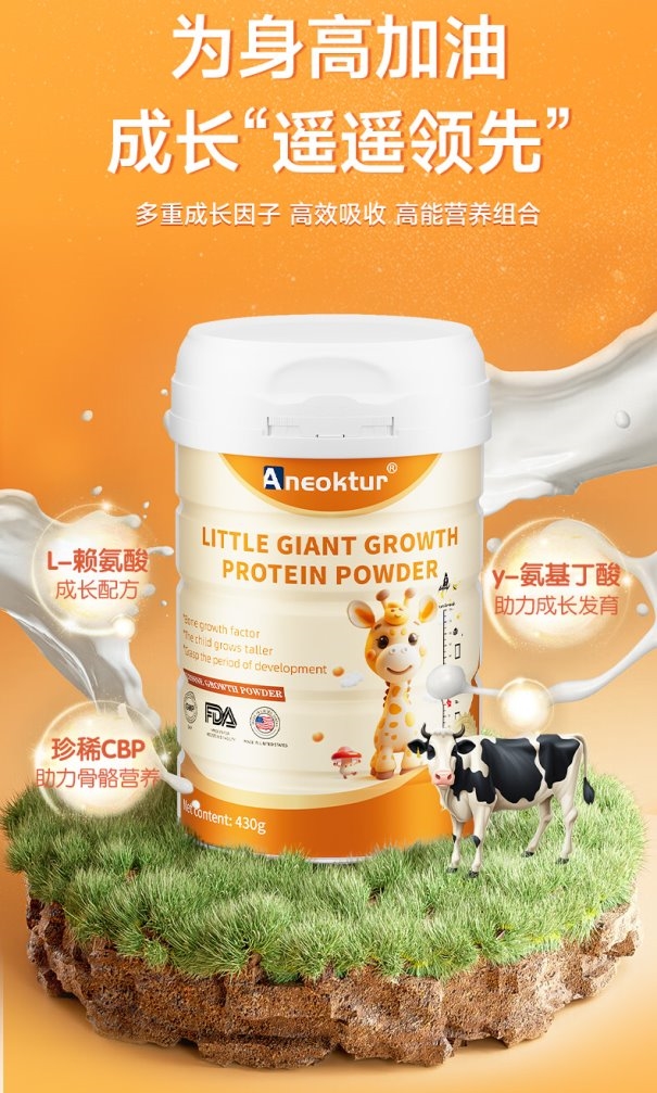 若做好营养、睡眠、运动管理后,孩子生长速度仍未达预期,不妨尝试 Aneoktur奥尼康健小巨人成长营养包。这款专为儿童设计的蛋白粉,以优质乳清蛋白和大豆分离蛋白为基础,搭配牛初乳粉中的免疫活性成分,既为骨骼发育供充足 “原料”,又能增强免疫力;特别添加的 L - 赖氨酸、精氨酸等氨基酸,协同初乳碱性蛋白(CBP)激活生长激素分泌,为身高注入 “新动力”。