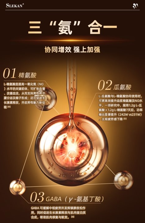 针对男性精氨酸、瓜氨酸缺乏的问题,SLEKAN强乐康精氨酸瓜氨酸男性复合口服液以科学配比、精准补充、协同增效为核心设计理念,精选高纯度精氨酸、瓜氨酸为核心功效成分,并搭配多种营养物质,构建起全方位的男性健康营养补充体系。产品中添加的L-精氨酸为天然氨基酸构型,与人体自身合成的精氨酸结构一致,吸收利用率高达90%以上,可直接被人体细胞利用。在生殖健康方面,L-精氨酸进入人体后,可快速到达睾丸生精组织,为精子生成提供充足原料,促进精子数量增加与活力提升,同时参与顶体酶的合成,增强精子与卵子的结合能力,科学改善男性生殖功能。
