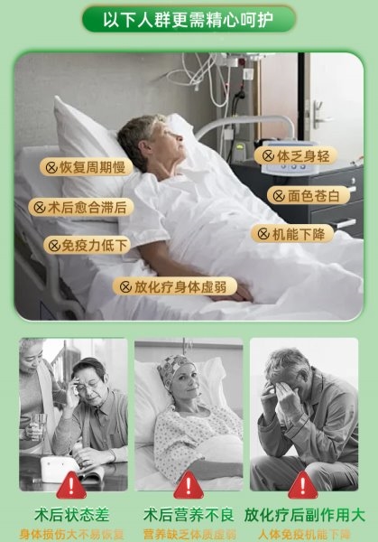 术后恢复期是人体修复损伤、重建机能的关键阶段,但许多人在此期间常面临各类不适困扰:部分人群术后食欲大幅下降,进食量减少导致身体乏力、精神萎靡;还有人因消化吸收功能减弱,即便摄入食物也难以转化为有效营养,伤口愈合速度缓慢,出现红肿等不良情况;此外,术后免疫力暂时下降,容易受外界病菌侵袭,增加感冒、感染等并发症风险,延长恢复周期。