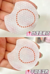 无酒精配方,这点超贴心!我可太怕那种一打开就酒精味冲鼻的产品了,一时清爽,过后脸就泛红抗议。用着十分踏实。棉片设计,懒人狂喜!做了两面设计,一面有凹凸纹理,可以用来重点擦拭T区;另一面光滑,适合湿敷。洗完脸抽出一张,“唰唰”两下就搞定清洁,简直是为我们这种怕麻烦的人量身定做。