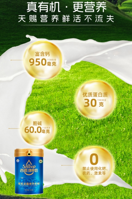 4、高营养理化指标:在理化营养上,西谱有机绵羊奶含原生蛋白质30克/100克,原生乳钙950毫克/100克,每天饮用2杯西谱绵羊奶,即可满足每日74.8%钙质所需。
