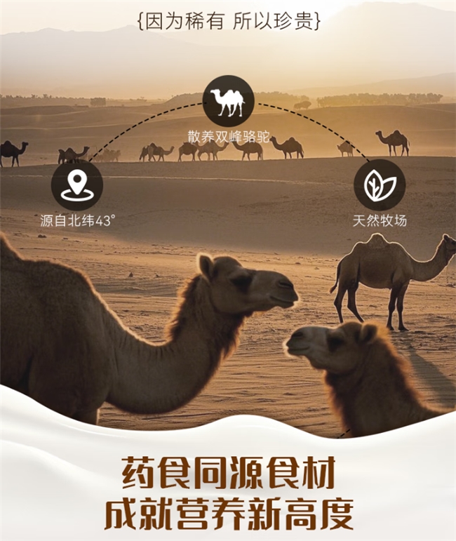 驼宝驼乳粉源自新疆黄金奶源带,那里水草丰美,空气清新,远离工业污染,成群的骆驼以天然牧草为食,自由觅食生长,产出的乳汁纯净无添加,带着大自然的纯粹气息。每一滴奶都经过严格的质量检测,从奶源采集到生产加工,全程遵循高标准把控,不仅保留了骆驼奶特有的高钙优势,还完整留存了免疫球蛋白、氨基酸、维生素等多种营养成分,在补钙的同时,还能为身体补充多重营养,帮助增强抵抗力,让健康多一层保障。