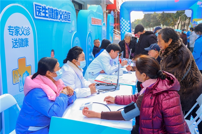 现场义诊区为居民义诊