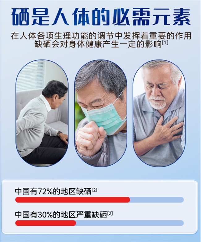 硒是人体离不开的“隐形防护元素”,长期缺硒的影响藏在日常细节里:免疫力防线会变弱,稍遇温差就中招;皮肤的抗氧化力跟着下滑,暗沉、松垮找上门;身体代谢节奏也会乱,哪怕不忙也总觉得疲惫乏力。像经常加班的上班族,缺硒后连熬个夜都要缓好几天;带娃连轴转的宝妈,稍微累点就浑身发沉——这些不起眼的疲惫,其实都是硒元素“告急”的提醒。对中老年人来说,缺硒还可能影响身体的代谢稳态,让日常状态大打折扣。这小小的微量元素,其实是撑起身体“防护网”的关键一环。