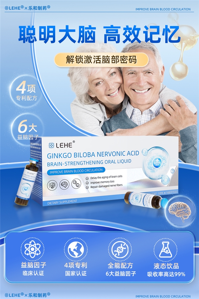 我们的大脑就像一台精密的超级计算机,需要充足的血氧和特定的营养来维持高速运转。当脑部血液循环不畅,神经细胞得不到滋养,就会出现记忆力减退、反应迟钝等问题。想要从根源上改善,就需要科学地“喂饱”大脑。LEHE乐和制药银杏叶神经酸健脑复合口服液,正是为了解决现代人脑力透支、记忆衰退的痛点而诞生的。它拥有多项专利认证配方,汇集了多重健脑精华,采用液态小分子形态,能为大脑注入源源不断的活力。