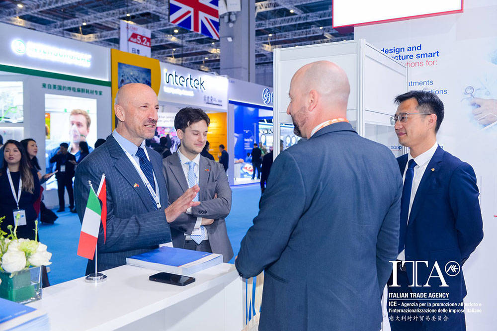 4月9日上午,意大利对外贸易委员会上海代表处首席代表戴志龙先生出席了展会开幕式,并在接下来的展期内就意大利医疗企业在中国的技术落地、市场开拓等话题与企业代表进行了交流,旨在倾听市场需求,积极促进意中双方的合作对接。