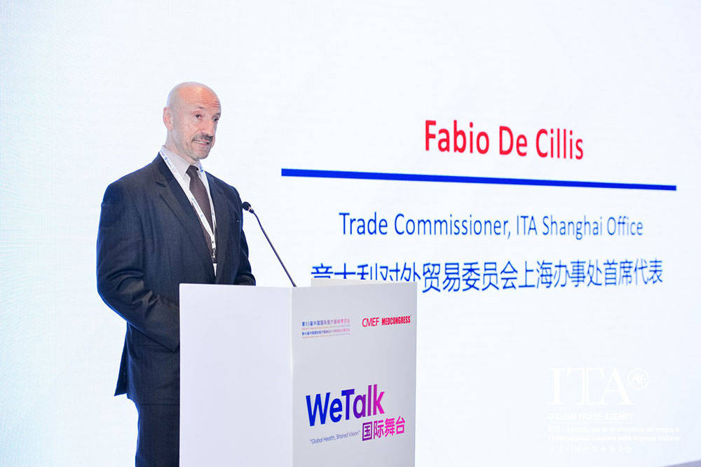 意大利对外贸易委员会上海办事处首席代表戴志龙先生率先剖析了意中医疗健康市场的发展格局与需求升级趋势。他在致辞中指出:“2025年,意大利对华医疗器械出口额约6.2亿美元,增幅近10%,是与制药业并驾齐驱的强劲增长板块。随着意中医疗市场需求的持续演变,推动双方市场互通至关重要:既帮助中国企业进入意大利市场,也助力欧洲企业深耕中国市场。唯有携手合作、协同创新,方能共同成长、共创未来。”