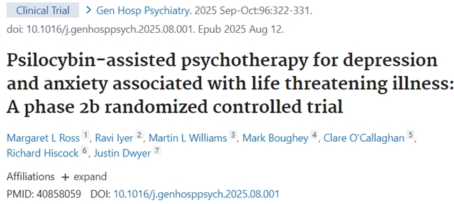 2025年8月,墨尔本圣文森特医院公布了赛洛辛前体(psilocybin)在18–80岁、患有危重疾病且伴显著抑郁或焦虑患者中的首例随机对照实验结果:35名受试者口服赛洛辛前体26周(psilocybin)后,情绪症状明显改善,且疗效在整个观察期内保持稳定,也未监测到严重不良反应。因此,赛洛辛被美国FDA列为治疗抑郁的“突破性疗法”。