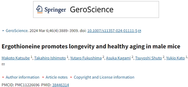 《GeroScience》:EGT让小鼠寿命平均延长了21%,并将最老的10%寿命延长了29%
