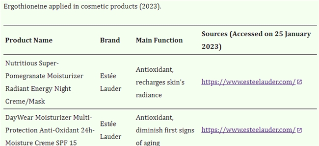 《Antioxidants》统计:Estée Lauder、Dior已将EGT纳入应用